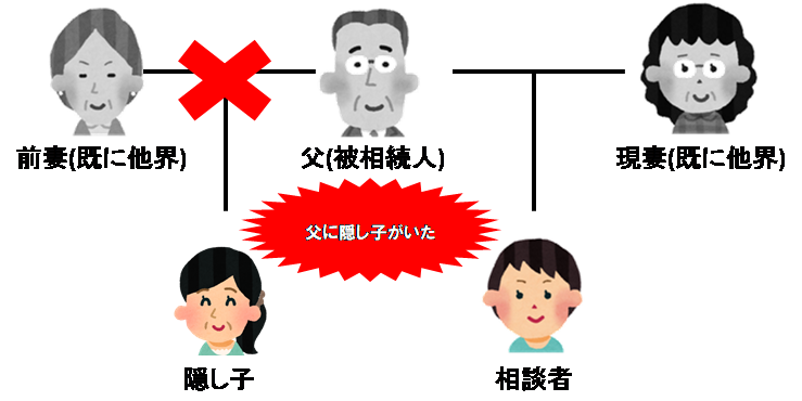 母は既に亡くなっており、当初は子供である自分だけが相続人だと思っていましたが、後々亡くなった父には母より前に前妻が1人おり、更にその前妻との間に隠し子がいることが判明したため、対応に困ってしまったという事でした。