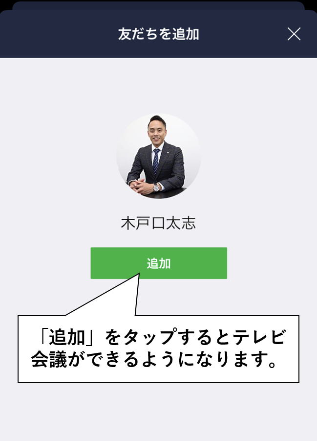 これにより、テレビ電話ができる状態になります。よろしければ、追加後に一言どなたかご氏名をお送りいただけると幸いでございます。